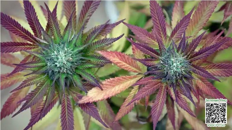 Несмотря на тот факт, что привычным цветом для растений каннабиса является насыщенный зеленый, некоторые сорта приобретают великолепные фиолетовые, розовые, пурпурные и красные оттенки, особенно накануне завершения фазы цветения.