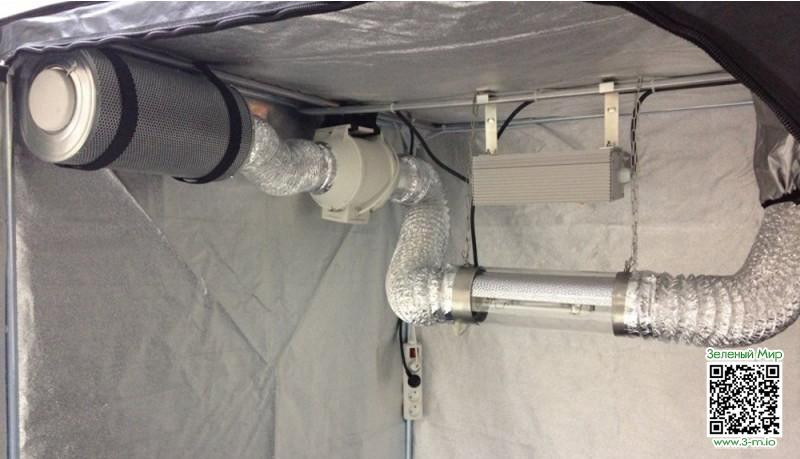 На основании того, что воздух в гроубоксе должен обновляться каждые 5-10 минут, определяется ее нужная мощность и просчитывается конструкция.
