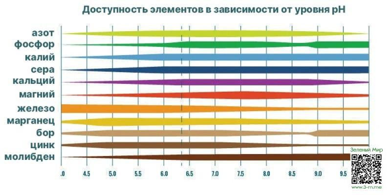 Доступность элементов в зависимости от уровня pH