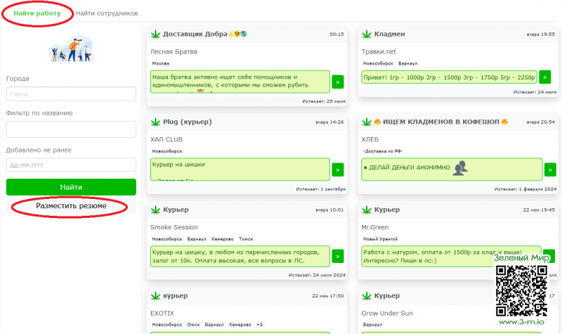 2. В разделе "Найти работу" нужно кликнуть "Разместить резюме".