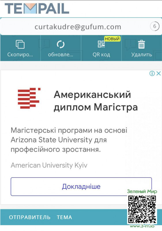 2. Получаем временную почту.