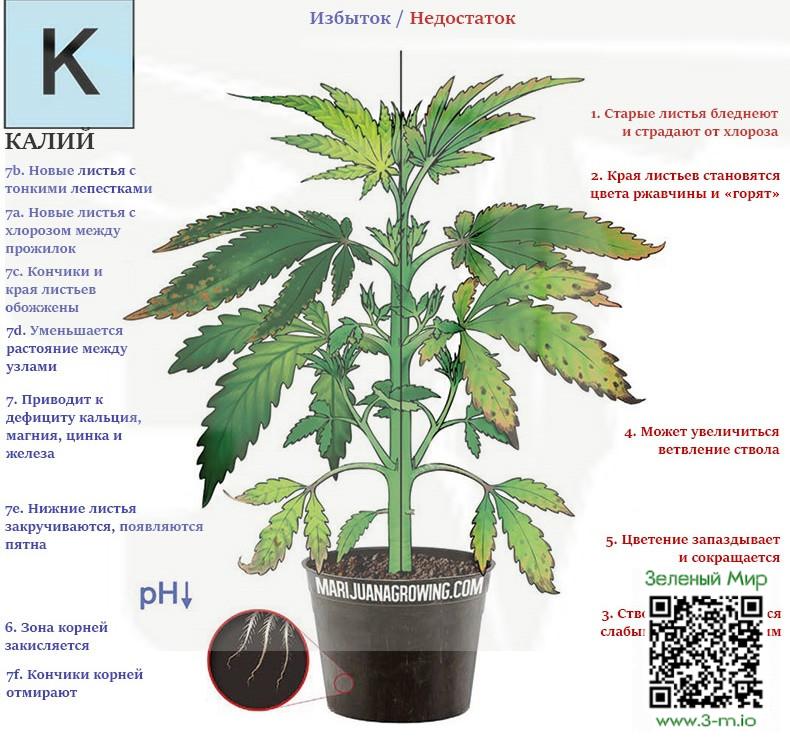 Как проявляется дефицит калия у каннабиса?