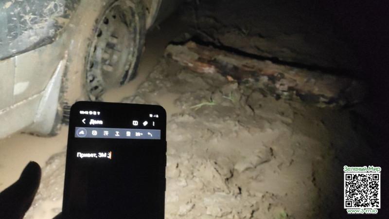 Точка была в области, в лесу на берегу речки, совсем недавно прошёл дождь и все дороги ужасно размыло. Связь там не ловила.