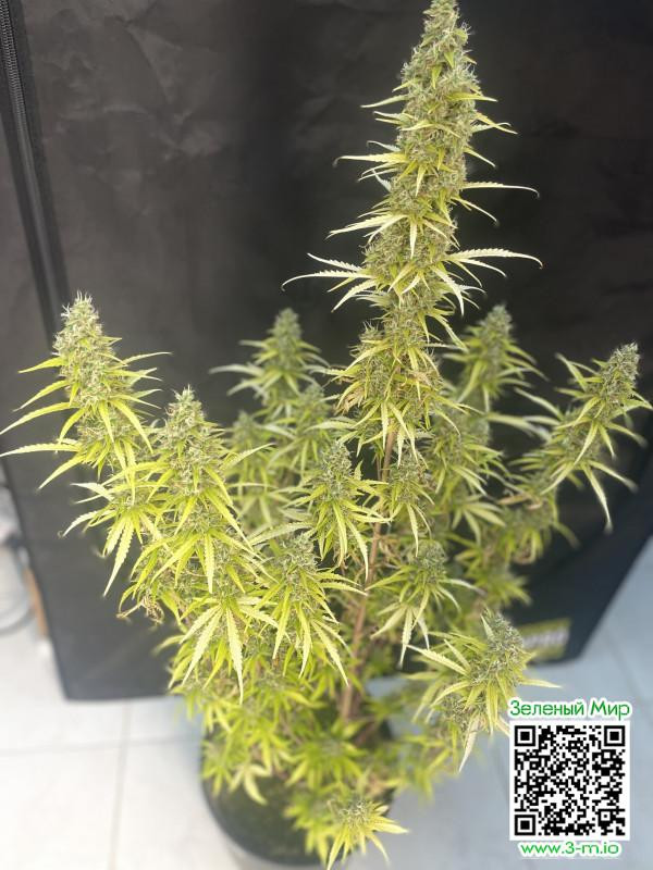 Сорт White widow обязательно стоит вырастить гроверу. И хорошим вариантом для начала знакомства с этой генетикой станет автоцветущий сорт White widow auto. Он получил своё название из-за обилия сверкающих кристаллов, покрывающих его соцветия при созревании. Это уже классический сорт для голландских кофешопов. Посетители ценят его за эффективность в создании весёлого и креативного настроения. Идеальный спутник для компании, прогулок, экскурсий по Амстердаму. Теперь и вы можете вырастить легендарное растение. Вариант как для гроубокса, так и для возделывания под открытым небом. Профессиональные гроверы ценят его за скороспелость и устойчивость к поражению вредителями и грибком. Это один из лучших автоцветущих сортов для выращивания в помещении и один из самых надежных сортов при выращивании в холодных и дождливых условиях. Может и к лучшему, что сорт утратил яркий кисло-сладкий запах, характерный для White widow. Теперь он имеет не сильный запах мокрой земли и специй. Однако эффект White widow сохранился в полной мере, а содержание ТГК в 20% говорит само за себя