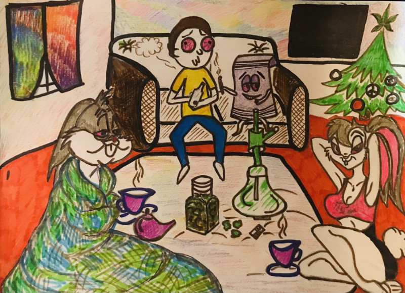 Всех горячо приветствую и поздравляю с этим знаменательным событием :-) ...ну и пожалуй поделиться нужно творчеством Моей супруги , нарисовала рисунок , который решено было назвать "вечера мультяшек , которые в теме