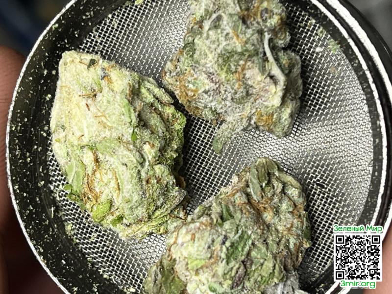Плотная, собранная, с насыщенным зелёным цветом. Смолистость сразу заметна, поверхность «живая». Есть редкие оранжевые волоски, которые добавляют контраст.
