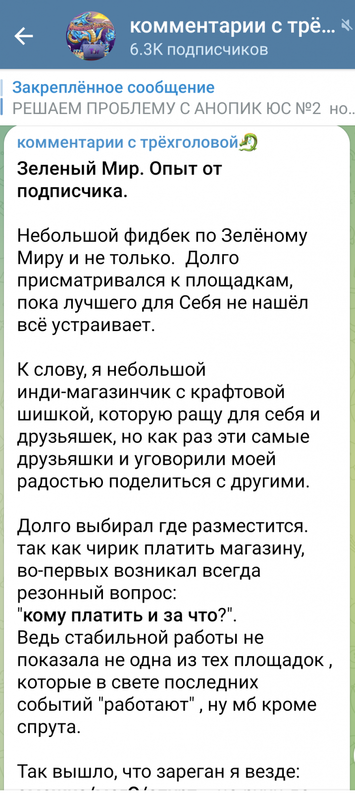 Мой фидбек про Зелёный Мир опубликовал