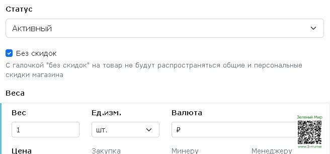 С такой галочкой общие и персональные скидки не будут распространяться на этот товар.
