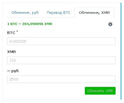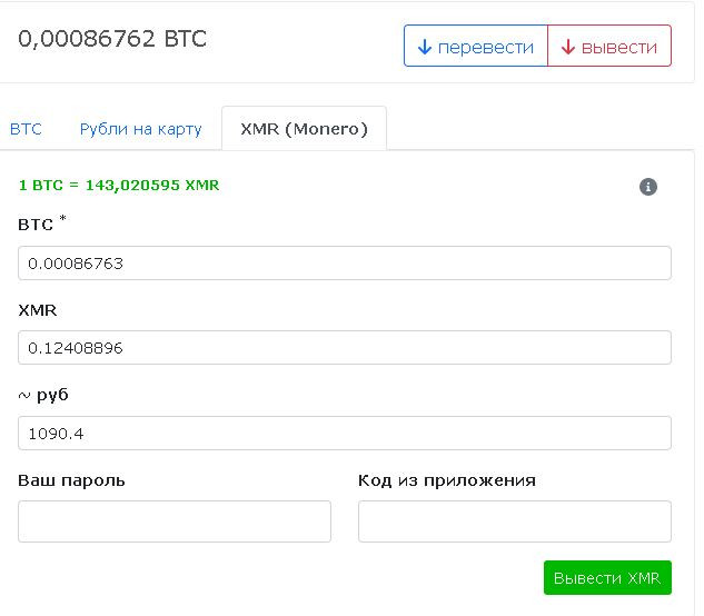 1. Ввод XMR (пополнение через XMR, в дополнение к BTC и обмену на карты)