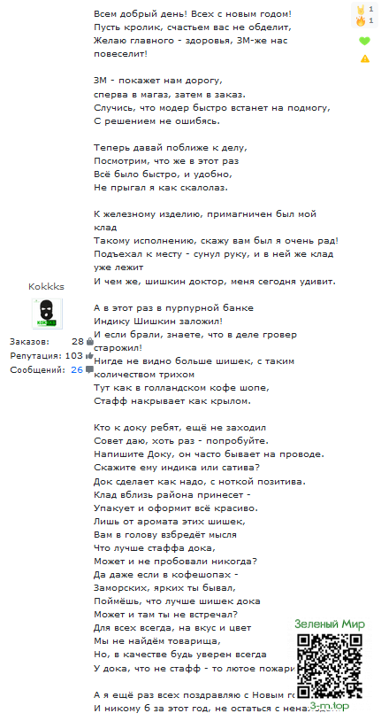 Администрация площадки постаралась над вайбом сайта. Чувствуется, что зашёл за добрым и зелёным натуром, а не злым и белым порошком. И это очень сильно радует, и заставляет возвращаться сюда снова и снова =]