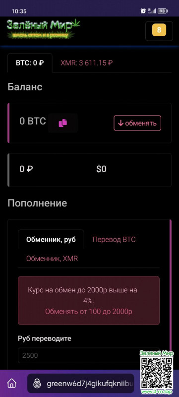 Но в личном кабинете в то же время показывает что их нет и при оплате заказа показывает будто нет баланса и предлагает оплату через обменник, хотя я приервой покупке также загтнял монеро и покупал у вас гашиша