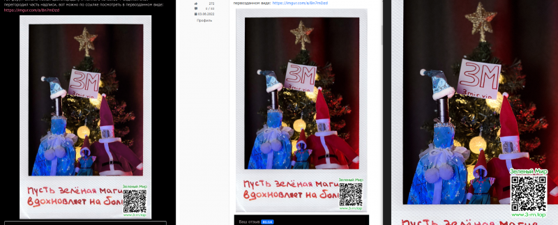 Заметил очень интересный баг (или фичу?): использование тёмного режима сайта меняет тон картинки на форуме. Приложил скриншот, на всякий случай дублирую на imgur https://imgur.com/a/YtyQeLO слева направо: тёмная тема, светлая тема, оригинал. Видно, что на левая картинка отличается от двух правых (они одинаковые), она темнее, словно фильтр какой-то накладывается... в общем какой-то эффект тёмная тема имеет на изображение.