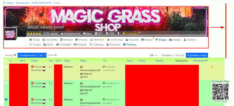 Привет, скорее всего битая HTML разметка блока или таблицы в разделе клады, отсюда и разрывы в блоках, раздел заказы работает отлично.