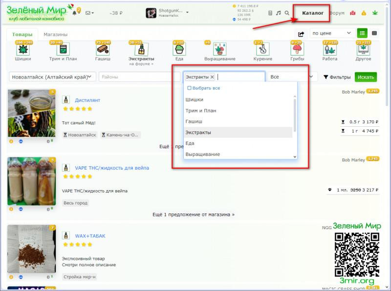 Нажимаю категорию Шишки,открывается Каталог.