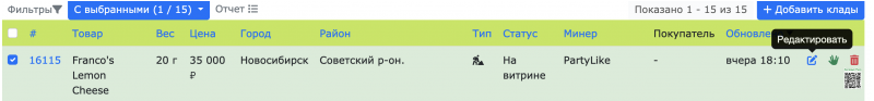 При редактирование клада, вес автоматически сбрасываеться на минимальный
