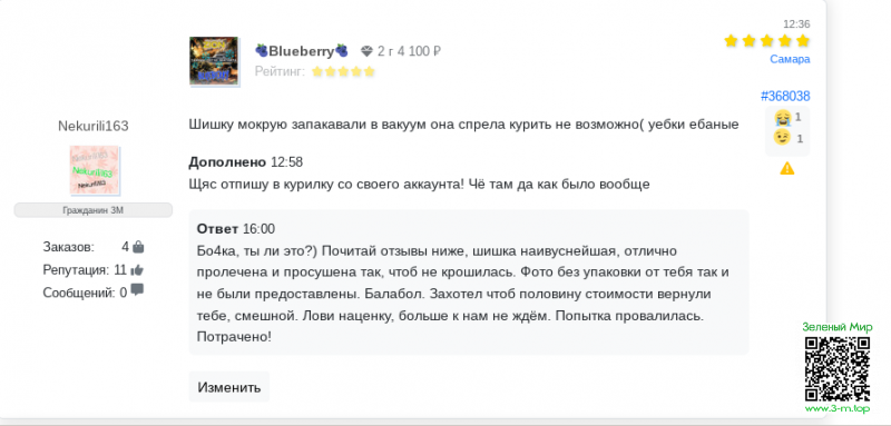 ну и на последок скажу, что, забавно выглядит то, что ты каждый магазин грязью полеваешь, я хз как тебе еще все суммарно наценку не поставили))) посмотри со стороны ты не один адекватный покупатель, есть еще несколько постоянных обитателей зм, включая меня и только у тебя одного чуда чудесного проблемы)